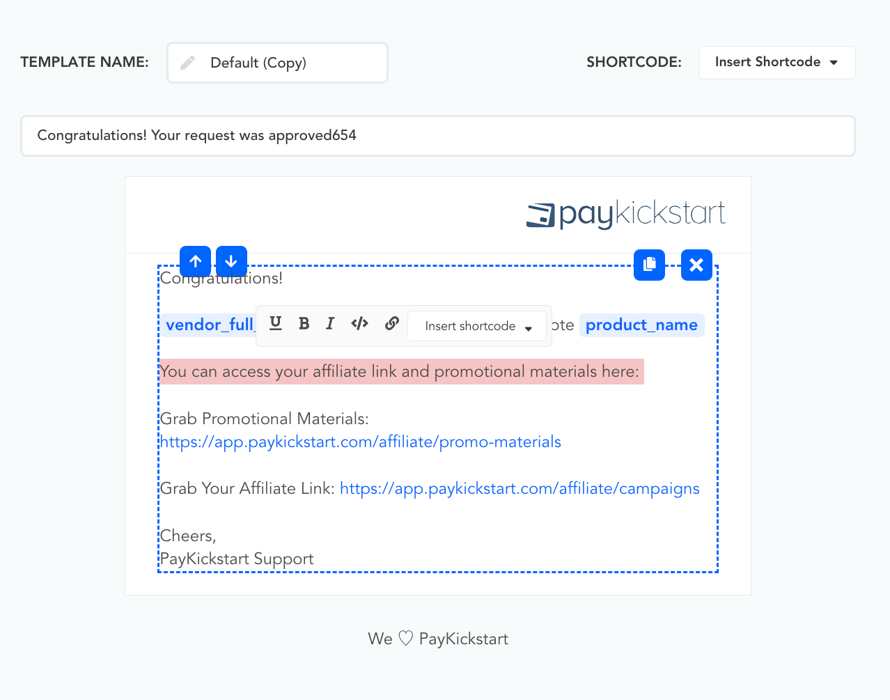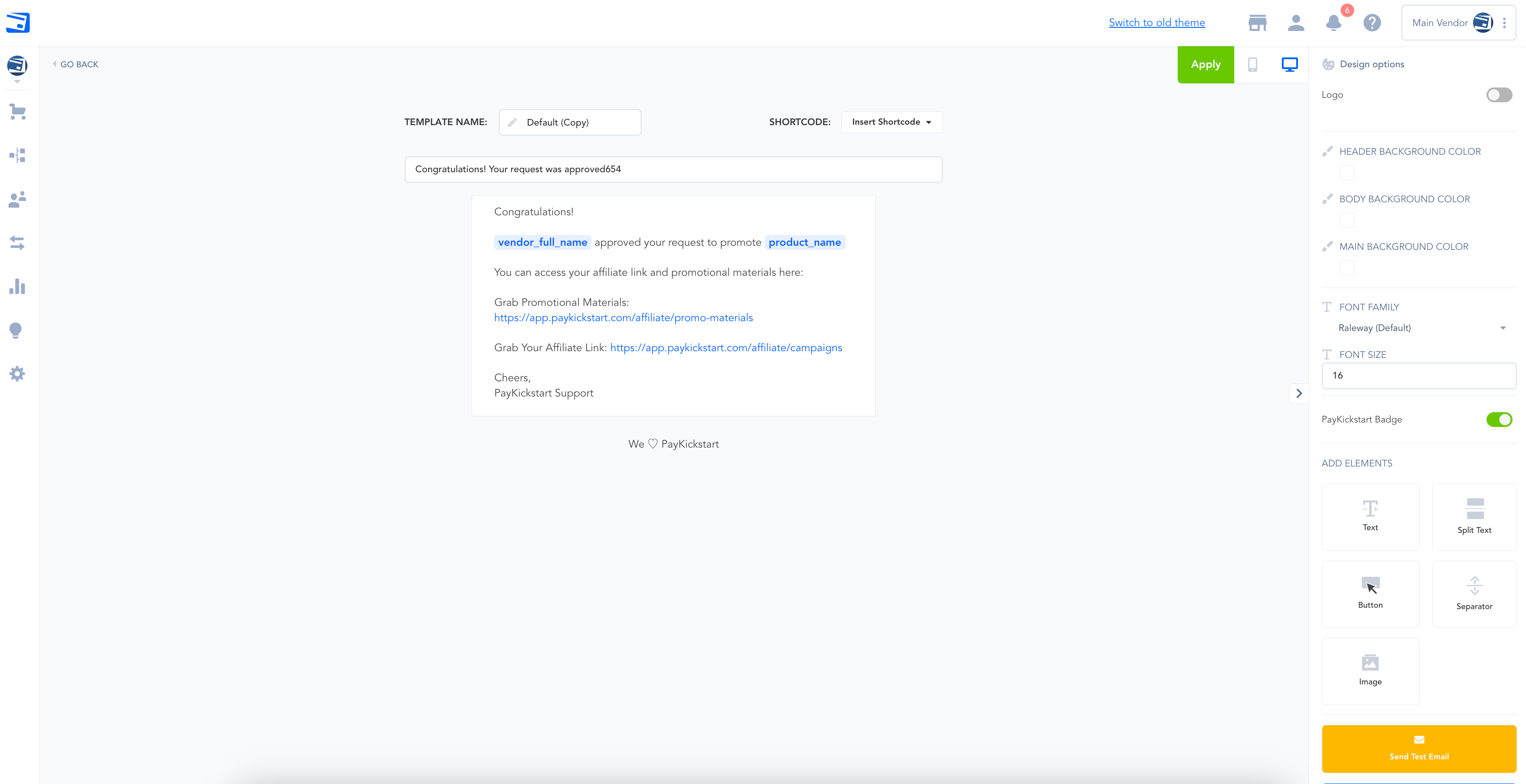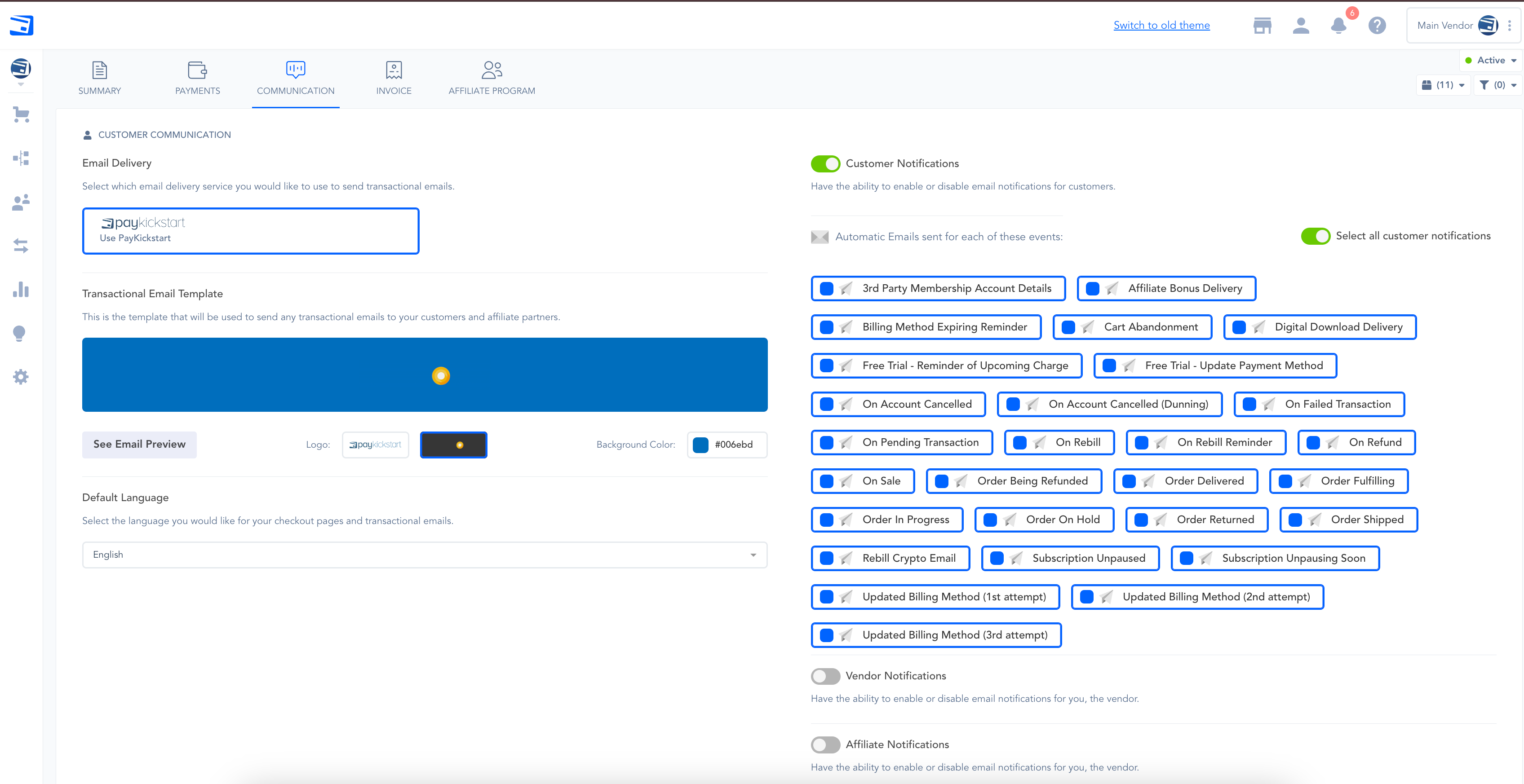PayKickstart allows you to control the sending and editing of the default transactional email templates that are sent to buyers, affiliates, and vendors.