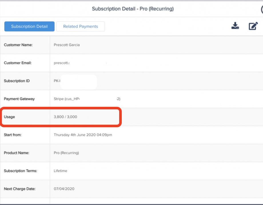 Vendors selling recurring-priced products have the ability to enable usage-based billing to charge customers overage fees if they go over their allotted usage amount in the billing period.