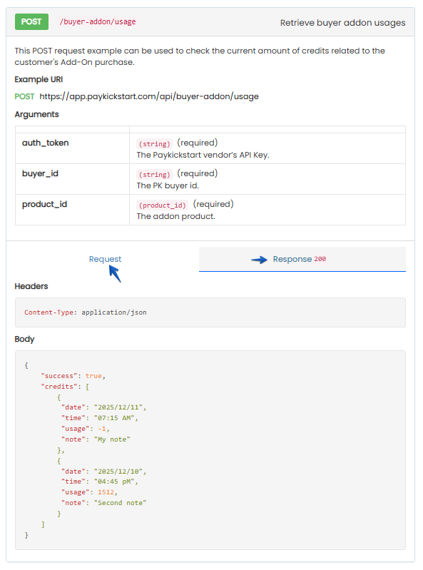 For SaaS platforms or automated services, you likely want credits to be deducted automatically when a customer uses your software. This functions similarly to the existing PayKickstart Usage feature.