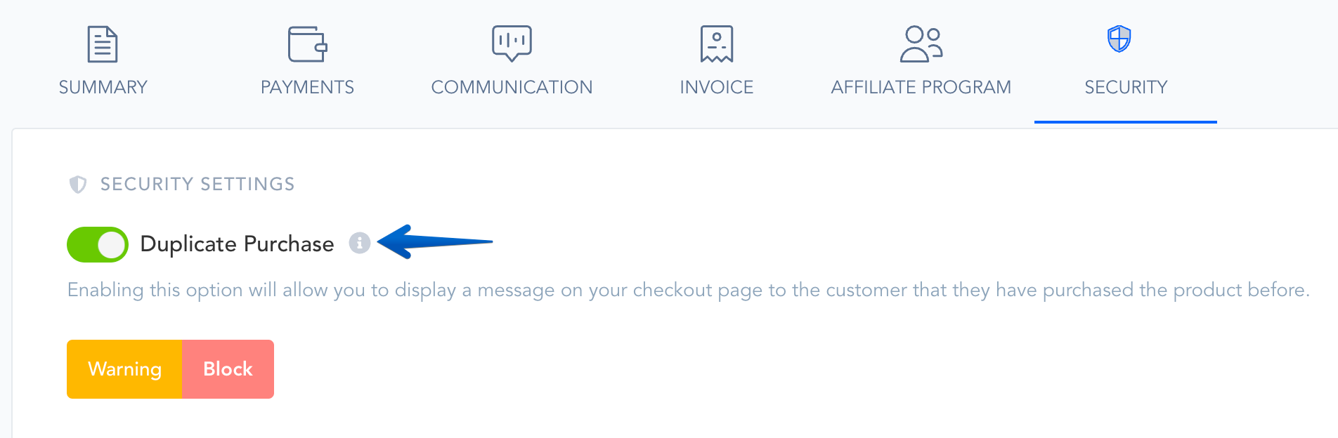 Enabling Duplicate Purchase Warning or Block