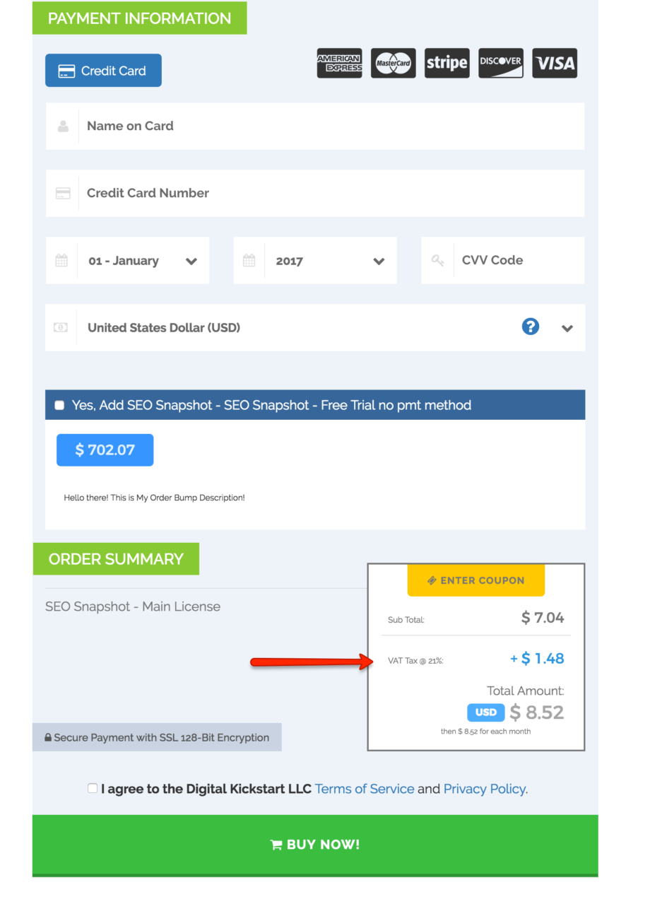Here is what it will look like on the checkout page when Tax collection is enabled.