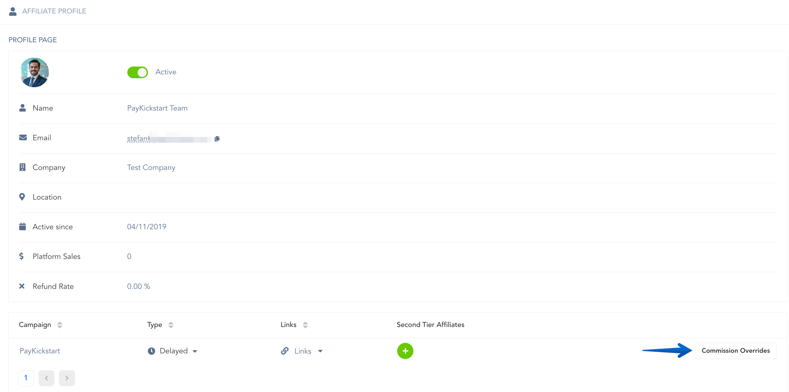 Step 2: Find the Campaign that you want to override and click the Commission Overrides button.