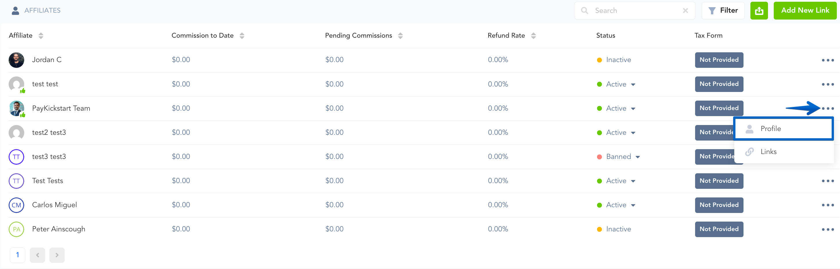 Step 1: Go to Affiliates → Affiliates, then find the affiliate and click the Edit icon.