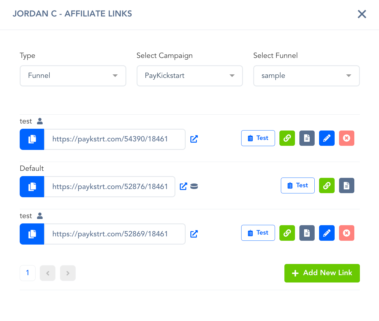 It will display all of their affiliate links, as well as the ability to add a unique tracking link associated with one of your campaigns.
